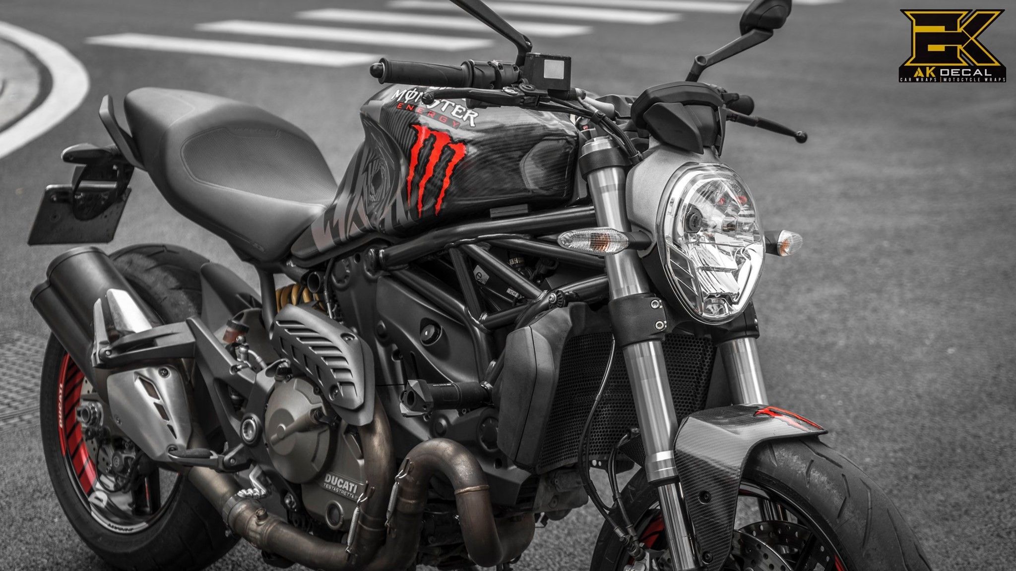 Decal Carbon 5D thuộc dòng decal cao cấp với độ dày và hiệu ứng bề mặt với những vân carbon rất đẹp và sâu được AK Decal thực hiện trên xe ducati monster 821 cùng tem rời cực tinh tế