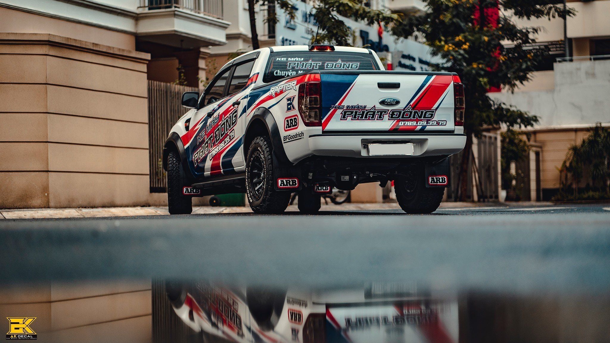 Tem xe Ford Ranger lên decal nhận diện thương hiệu xe máy Phát Đồng cực chất chơi người rơi, bộ tem được thiết kế riêng theo ý chủ xe mang tông chủ đạo xanh đỏ trắng kết hợp hài hòa.