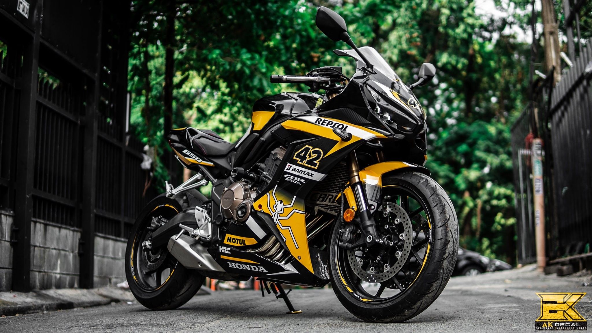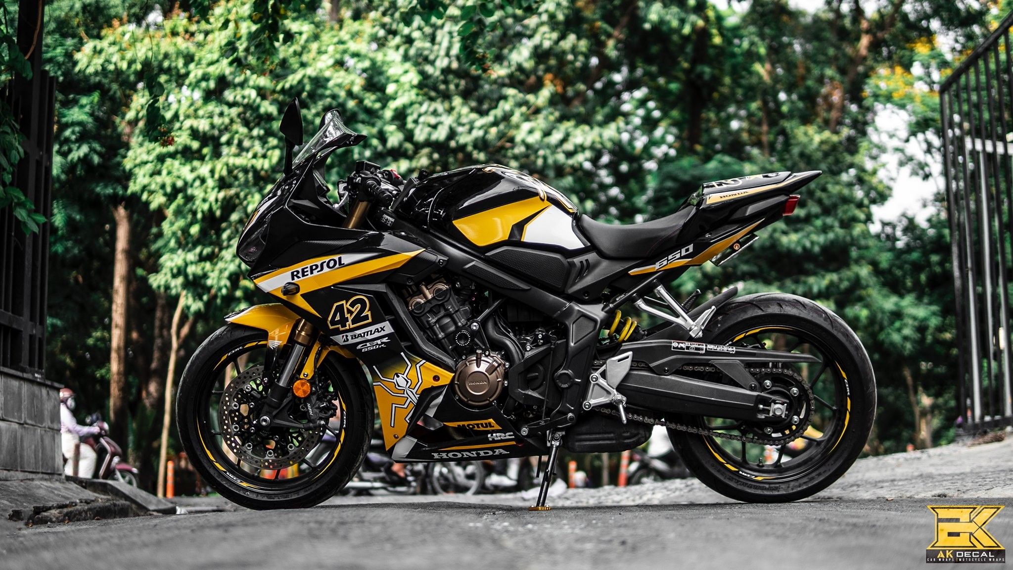 Honda CBR 650R lên tem trùm tông vàng đen cực kỳ mạnh mẽ với điểm nhấn là kiến và số 42