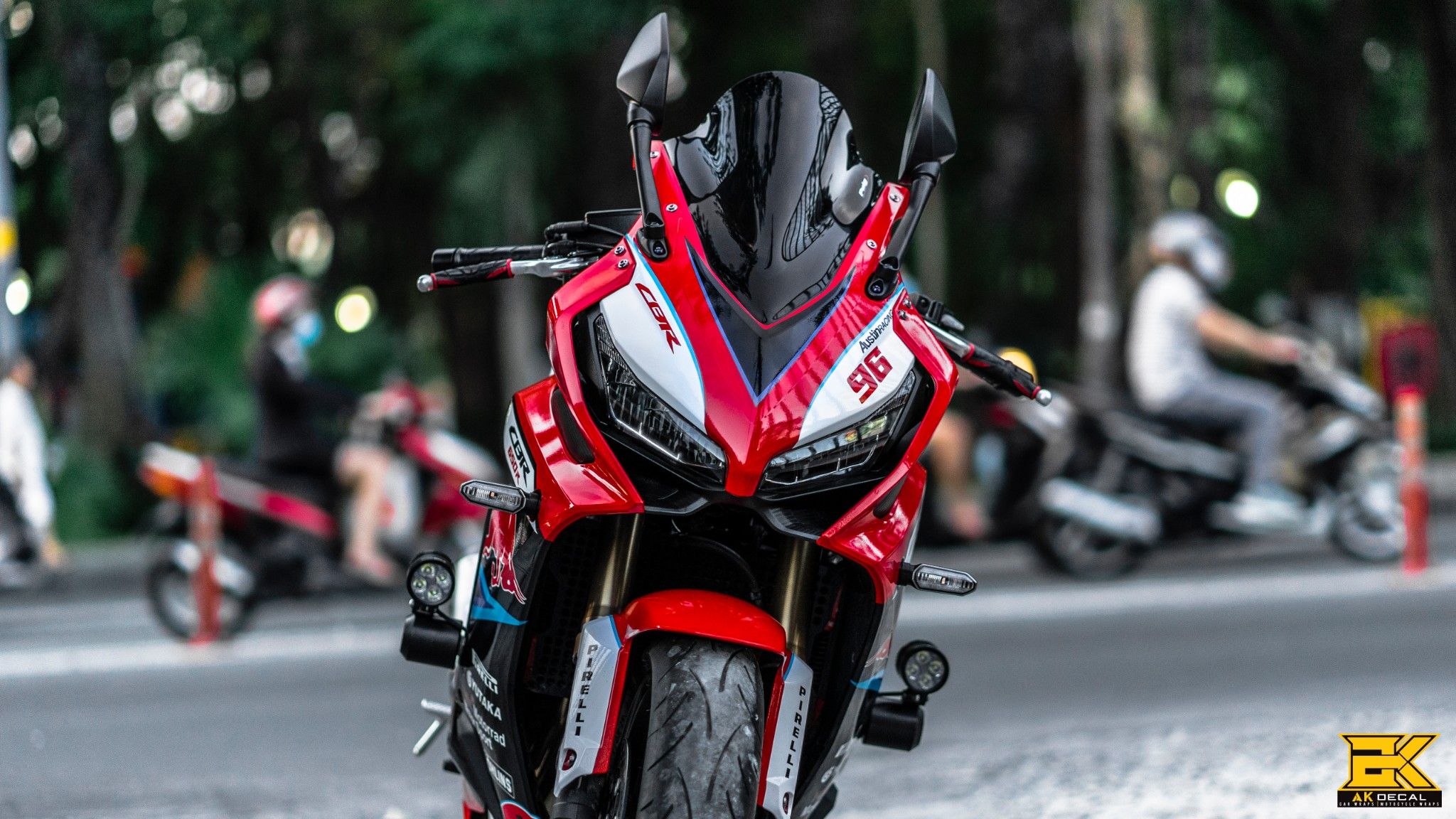 Honda CBR 650R lên tem trùm trung cấp màu đỏ làm chủ đạo kết hợp với màu xanh và trắng.
