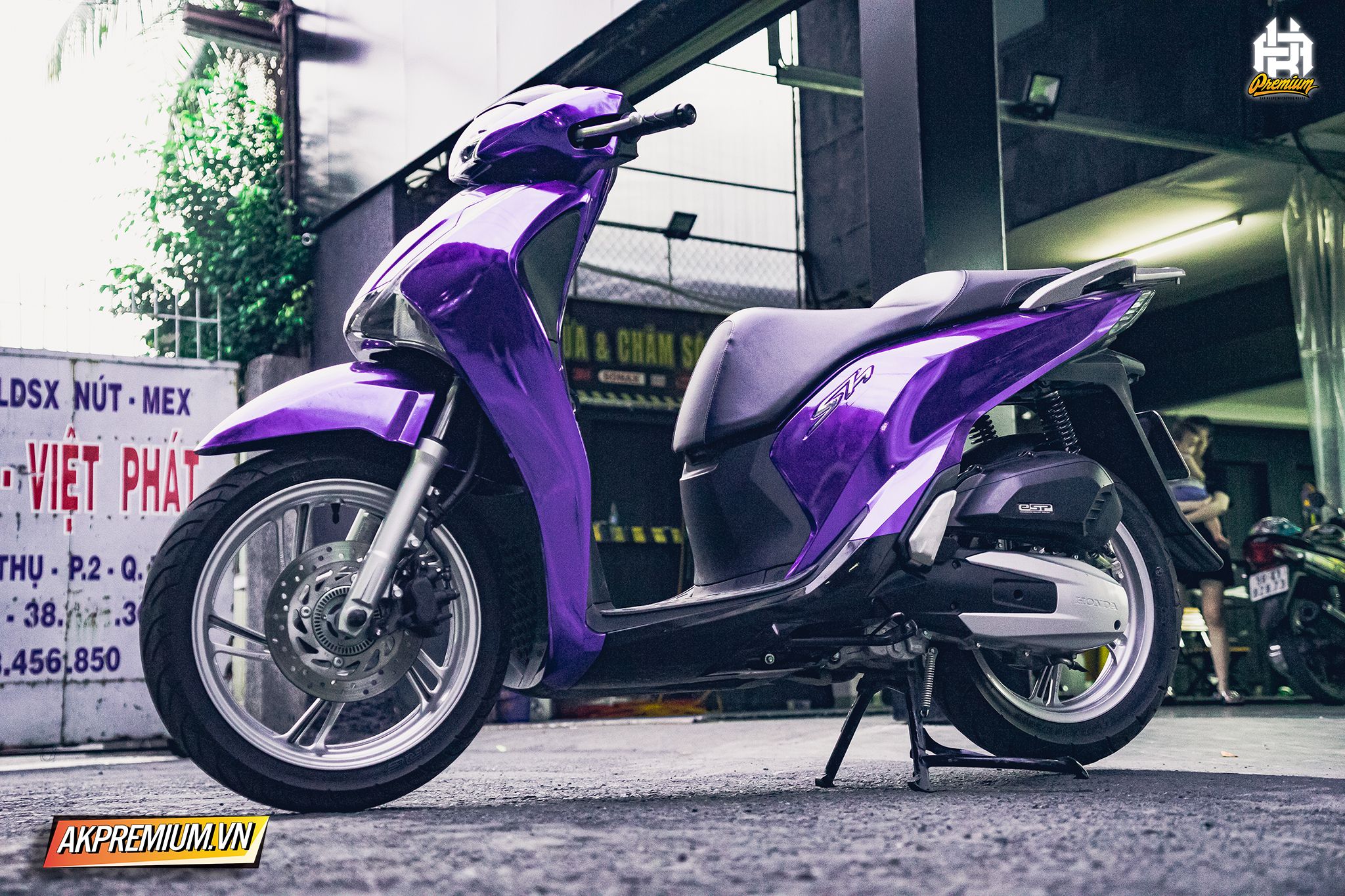 Được thi công tại AK Premium, Với chất liệu decal Glossy Candy có bề mặt cực kỳ óng ả, kết hợp cùng màu tím cực kỳ bắt mắt SH 150i đẹp sang chảnh trong bộ áo mới . AK Premium địa chỉ dán decal uy tín tại Tp. HCM