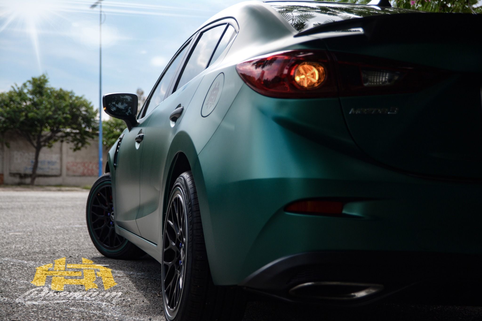 Mazda 3 Hatbach Dán Decal màu xanh ngọc bích cực đẹp. AK Premium đơn vị dán decal đổi màu xe uy tín có kinh nghiệm lâu năm và chế độ bảo hành tốt tại Tp.HCM