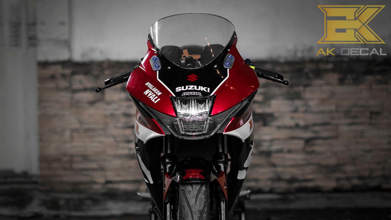 Mẫu tem xe GSX R150 phù hợp với thiết kế kiểu dáng tròn trịa, đậm chất Suzuki. Ngoài ra AK Premium còn nhận Thiết kế tem xe theo yêu cầu của khách hàng.