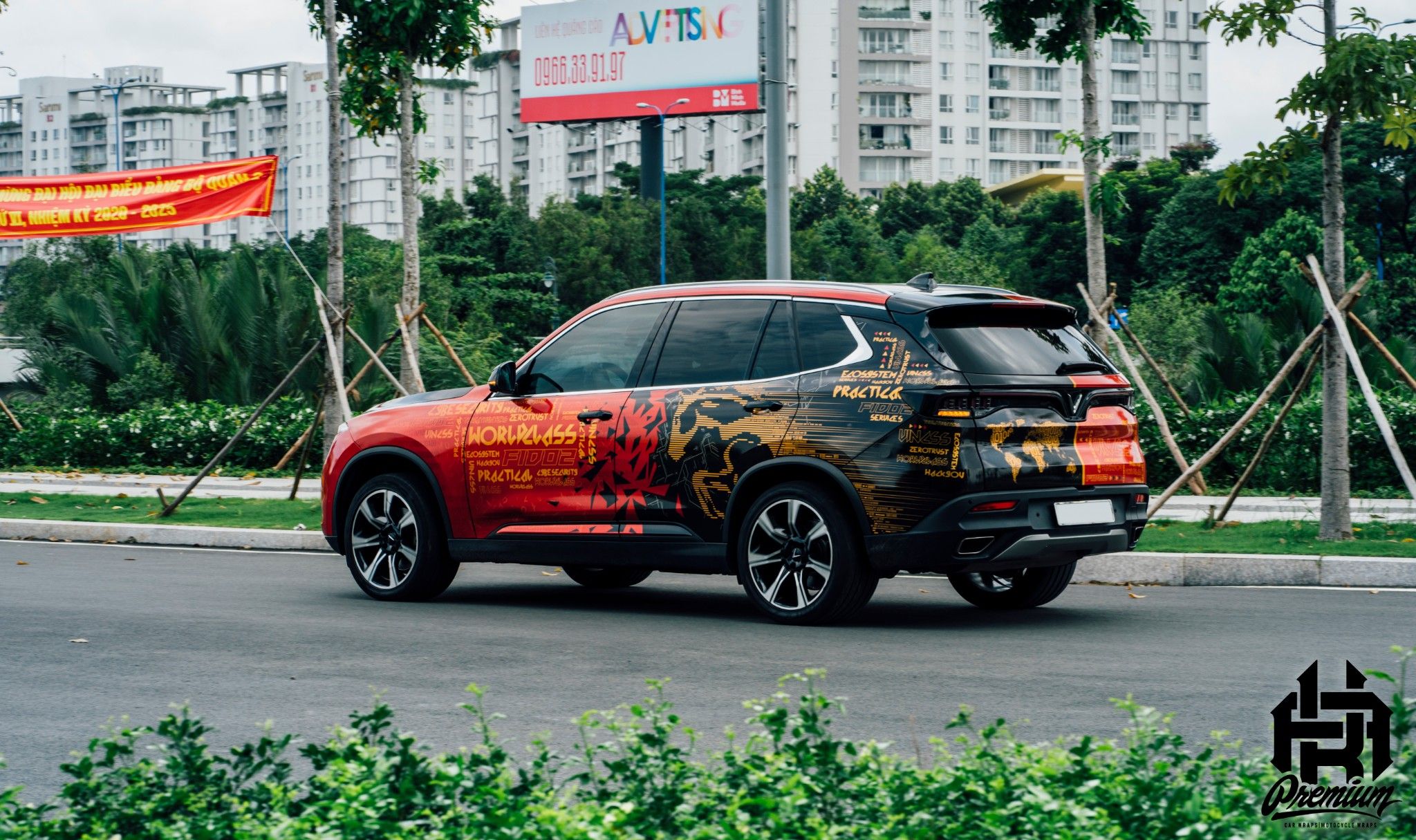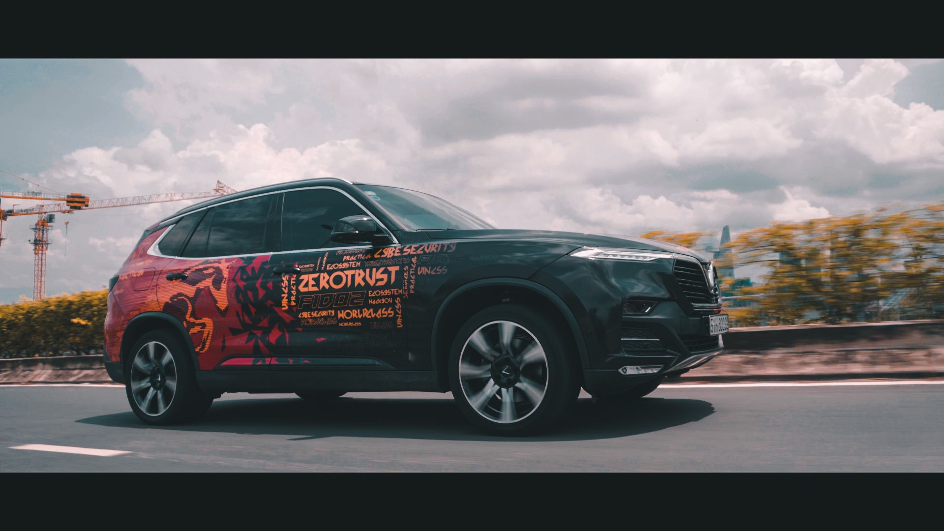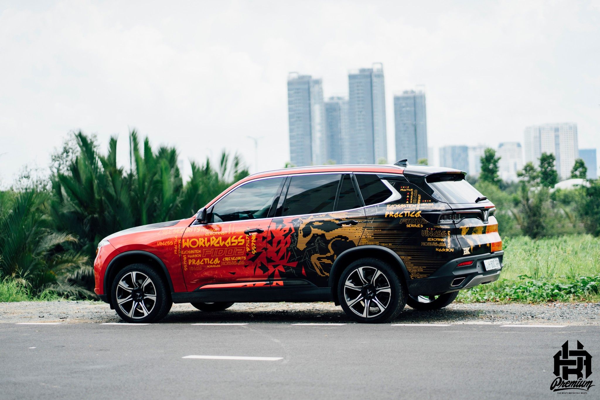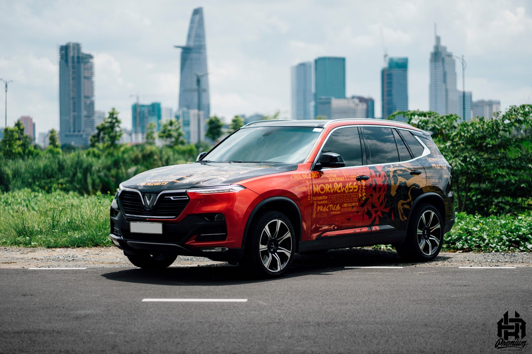 Hình ảnh chiếc Vinfast Lux SA2.0 mang phong cách xanh camo kết hợp cùng decal đen mờ cực kỳ cứng cáp và chất