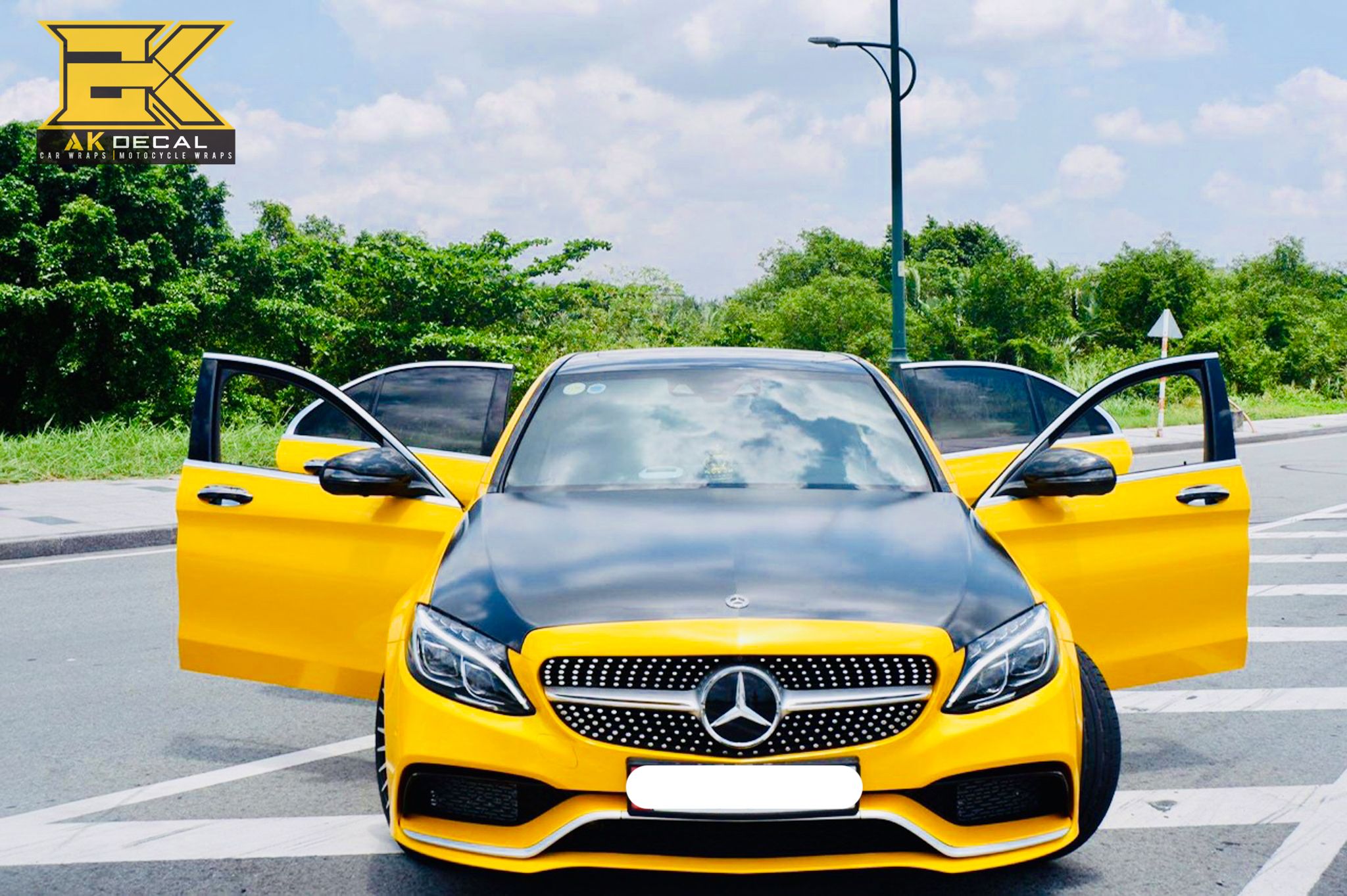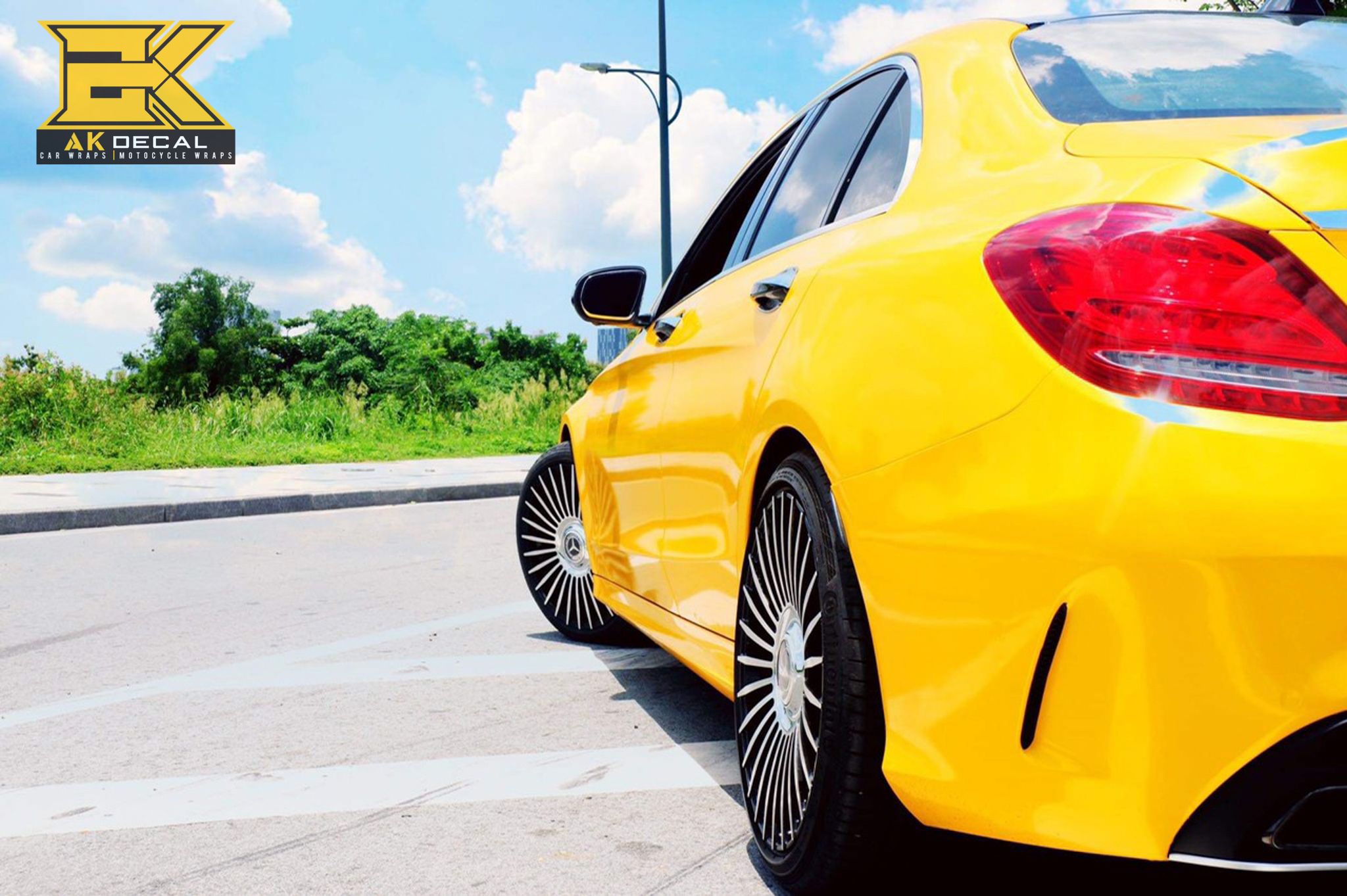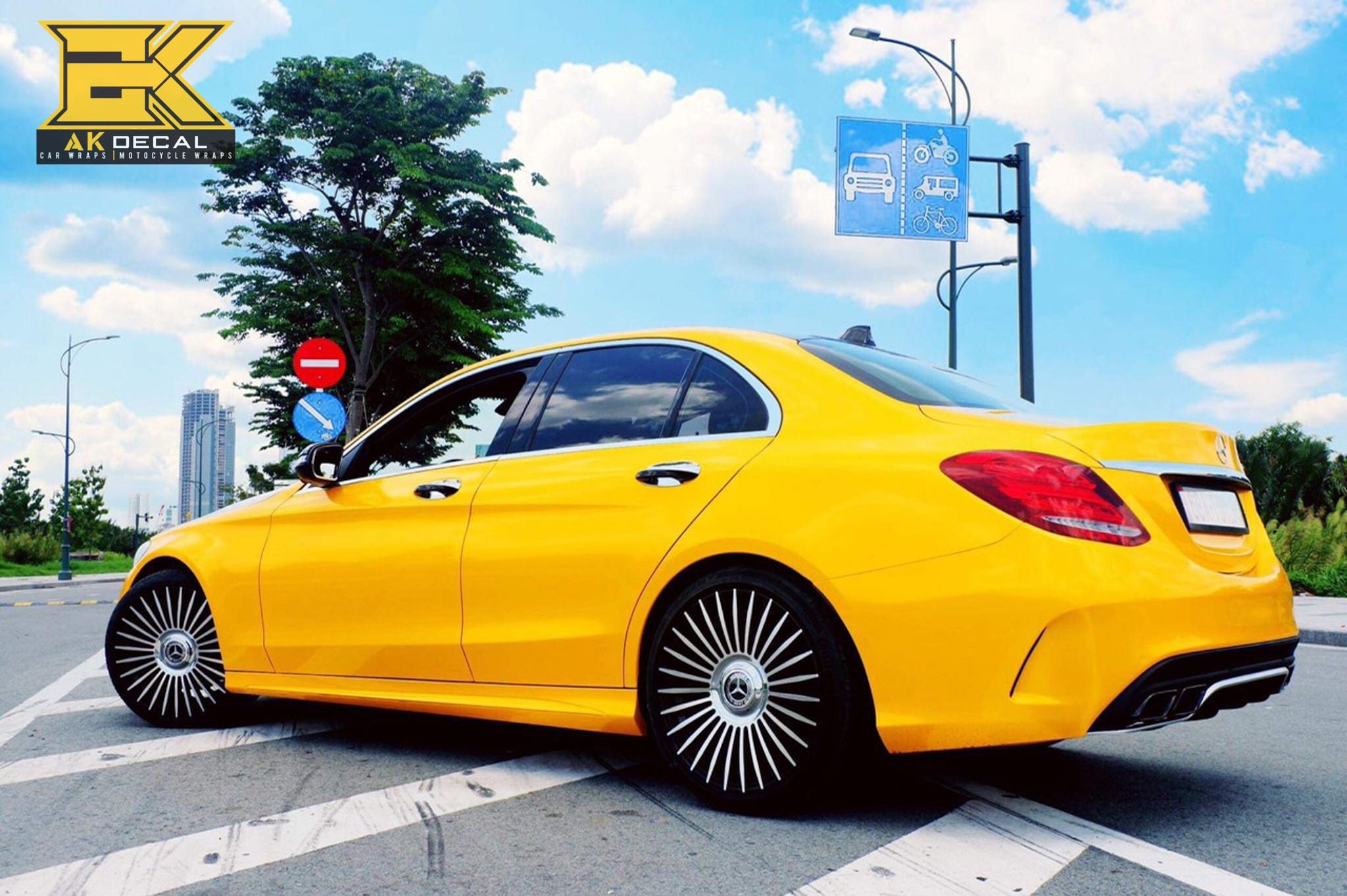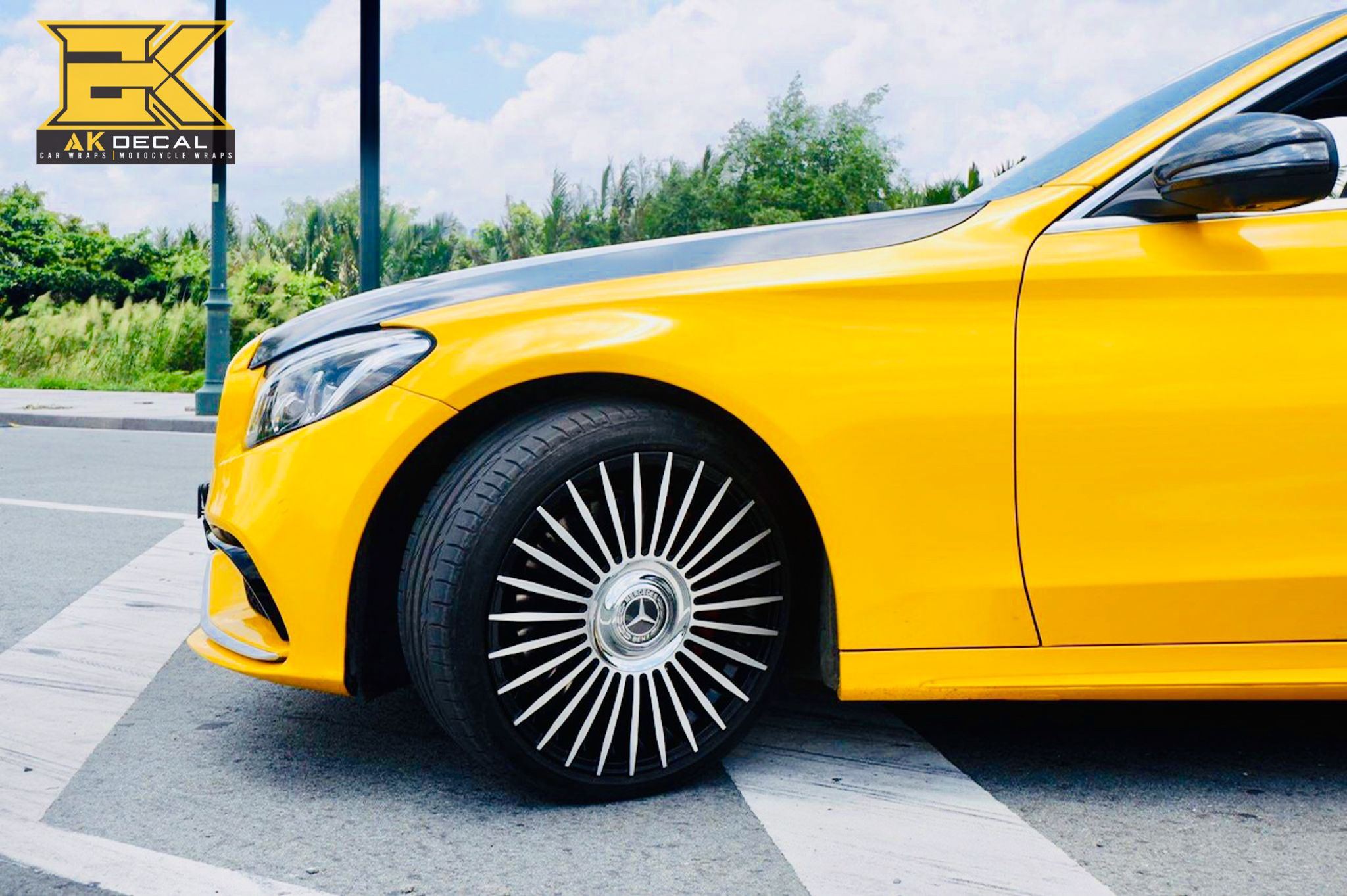 Mercedes AMG C63 Wrap đổi màu vàng kết hợp cùng đen bóng mang diện mạo mới cực kỳ sang trọng và cuốn hút. Thực hiện bởi @akdecal
